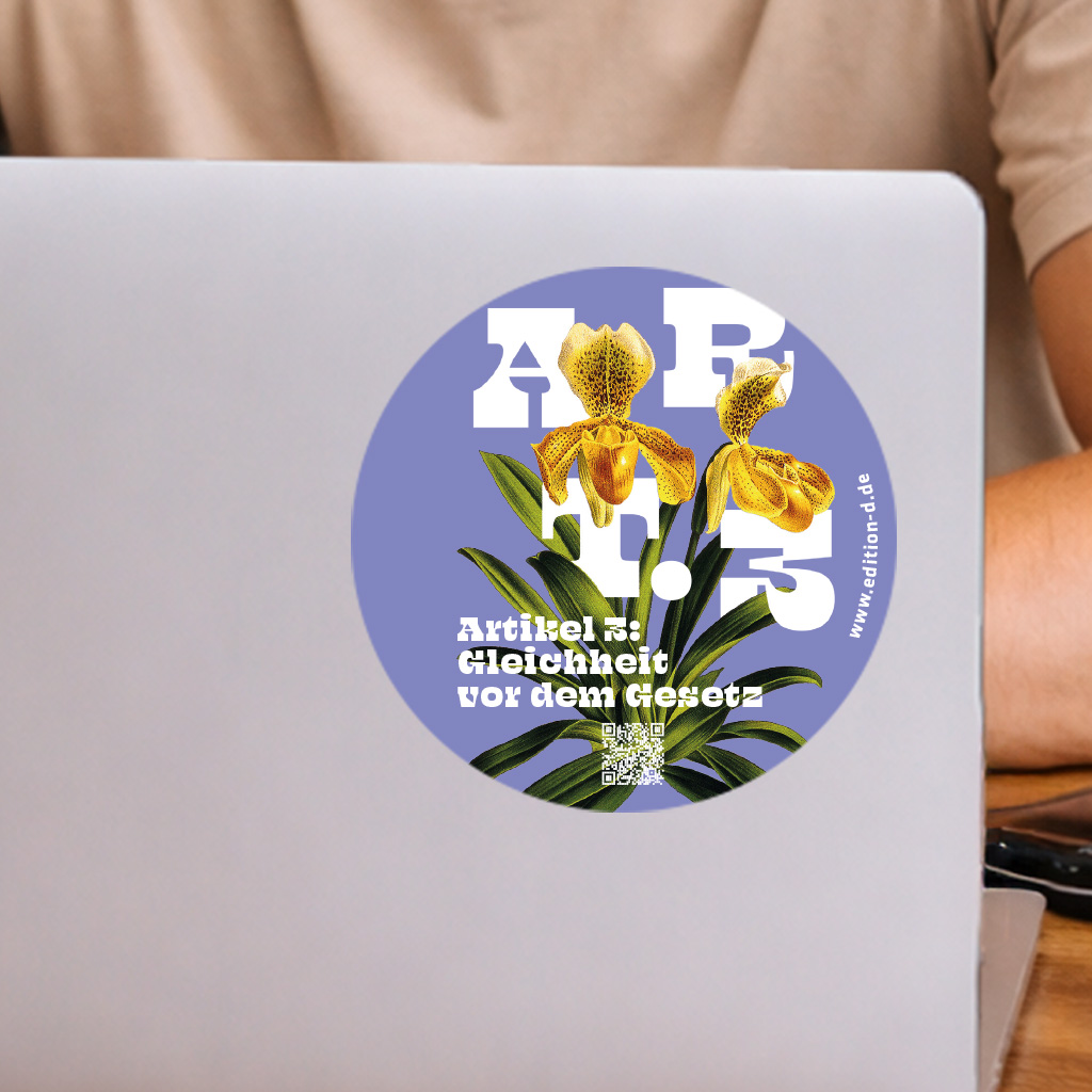 Dieser Aufkleber ist für Freunde der Demokratie gemacht. Das Motiv steht zugleich für freie Entfaltung und Wachstum, die nur in einer freien Gesellschaft gelingen kann. Teilnahme und gesellschaftliches Engagement gehören dazu. Einmal geklebt, ist der Grundrechte-Aufkleber ein kleiner, aber sichtbarer Beweis, dass Ihnen unsere Demokratie am Herzen liegt.